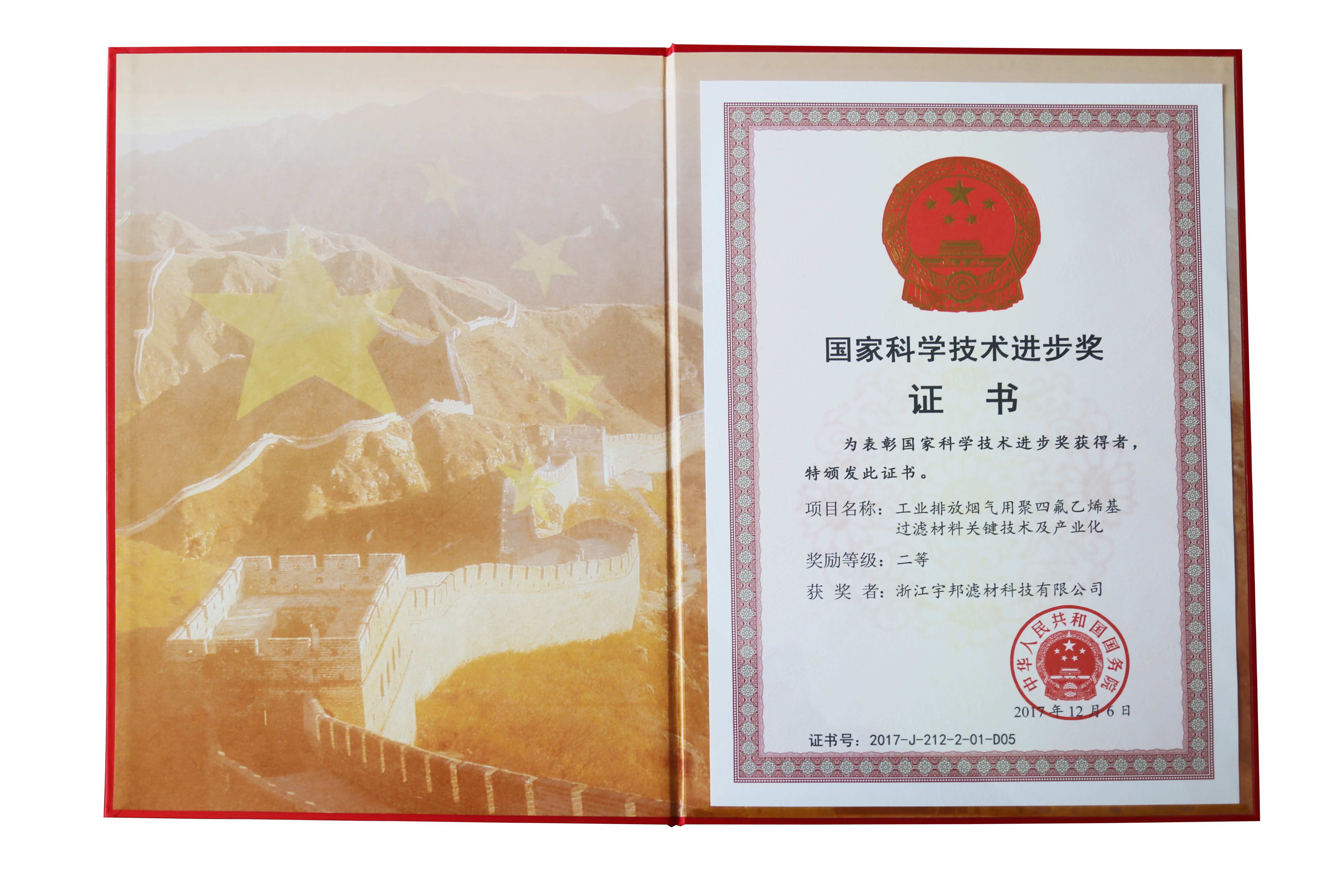 On November 15, 2016, the State Council executive meeting adopted the "13th Five-Year Plan for Ecological and Environmental Protection." Zhao Yingmin, Vice Minister of MEP, introduced the relevant policies of the 13th Five-Year Plan on Ecological Environment Protection, and put the ecological civilization construction and ecological environment protection in a strategic position from the party and the country. The significance, main content, basic characteristics, and planning of the “Plan” The policy interpretation of the implementation and implementation of the “Water Ten Articles” and “The Ten Atmospheres” and the current major problems and corresponding measures were carried out. Our company actively responded to the call of the country, vigorously participated in scientific research activities, participated in and completed the project of “Key Technologies and Industrialization of PTFE-based Filter Materials for Industrial Emissions of Flue Gas,” and won the second prize of the National Science and Technology Progress Award. On behalf of Sun Zhiqing, the chairman of our company, we went to the Great Hall of the People to participate in the award ceremony on January 8, 2018, and received this award, a symbol of honor.